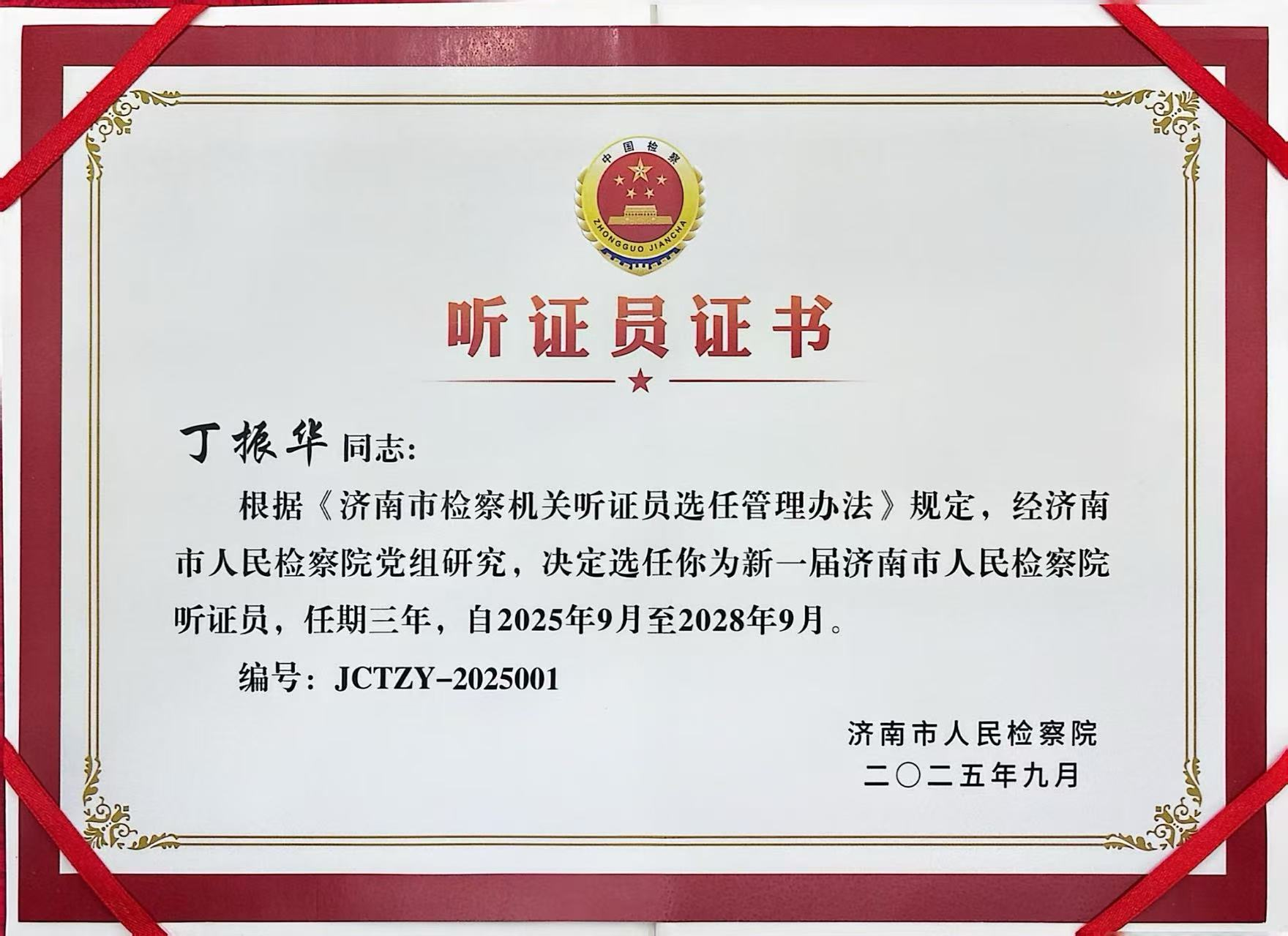 动态|众成清泰济南所丁振华律师获聘为济南市人民检察院第二届听证员